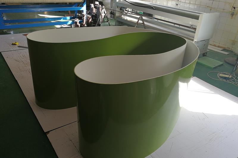 皮带优点特性: 传统橡胶皮带遇到油分子表面乳化既污染钢板又与滚轮打滑卷不紧钢板, 助卷带采用环形无接缝工艺,表面用耐油,耐磨,耐切割PU材料与钢板接触,背面为PU胶面材料与滚轮接触,在卷取时因滚轮和胶面接触增大摩擦力不会造成因滚轮和皮带打滑造成钢板卷不紧现象。