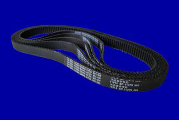 齿型带亦称同步带,分为单面齿带和双面齿带两种类型。前者主要用于单轴传动,后者为多轴或反向传动,系从1980年以来世界新出现的又一种高效传动带。齿型带根据齿的形状又分为梯形和圆弧形两种,以圆弧形齿的同步带所承受的扭矩为最大。从所用材料上,齿型带可区分为橡胶型和聚氨酯型两大类,而前者又有普通橡胶(通常为氯丁橡胶)和特种橡胶(多为饱和丁腈橡胶)之分。它们的结构是由钢帘线或玻璃纤维组成的强力层和以橡胶及尼龙布形成的外包橡胶层或聚氨酯胶层构成。