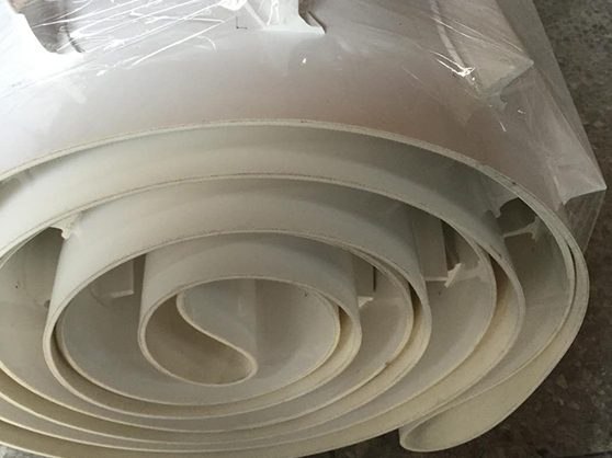 挡板加工——直挡板可选型号:T10,T15,T20,T25......T115,T120等,其他型号可定制; 挡板/挡块——规格、加工位置、数量,由客户自定; 加挡块——挡块样式、大小、数量、颜色根据客户来图来样定制加工; 导条加工——普通导条可选型号:6*4,8*5,10*6,13*8,17*11,22*14,30*17等,其他型号需定制;斜挡板可选型号:X10,X15,X20,X25......X115,X120等,其他型号可定制; 导条加工——普通导条可选型号:6*4,8*5,10*6,13*8,17*11,22*14,30*17等,其他型号需定制; 铲边——铲除花纹的宽度,长度、厚度根据客户来图来样加工; 打孔——孔距、孔直径、孔数量可直接由客户来图来样加工; 斜挡板可选型号:X10,X15,X20,X25......X115,X120等,其他型号可定制; 铲边——铲除花纹的宽度,长度、厚度根据客户来图来样加工; 裙边挡板输送带产品特点: 输送机:平板式或托辊式。Z字型.任意角度斜坡式.正转最小轮径为65mm,反转最小轮径为130mm 传动效率高,可达0.98,节能效果明显; 专业加工:皮带表面胶质可抵抗多种溶剂,酸类、盐类及碱类,高浓度者除外(例如硫酸及硝酸),皮带表面可加花纹各种花纹,可加PVC防漏导条、挡板及裙边、皮带底面可加V形导条及导板、皮带可打孔洞。 PU/PVC输送带带体弹性好,不易变形。选用高强力优质全棉、尼龙、聚酯帆布作带芯,原材料完全符合FDA等卫生标准,做到无污染,不影响食品卫生异味覆 盖层。PU/PVC输送带产品配方设计合理,符合卫生指标,色泽适度,轻巧耐用。PU/PVC输送带适用于食品工业或粮食部门运输散装、听装、包装成箱的粮食或食品到 400的大粒度,输送量可从1立方米/小时到6000立方米/小时。 传动效率高,可达0.98,节能效果明显; 从外观可分为平面PVC输送带和花纹PVC输送带。 PVC材料在实际使用中经常加入稳定剂、润滑剂、辅助加工剂、色料、抗冲击剂及其它添加剂。具有不易燃性、高强度、耐气侯变化性以及优良的几何稳定性。 PVC对氧化剂、还原剂和强酸都有很强的抵抗力。然而它能够被浓氧化酸如浓硫酸、浓硝酸所腐蚀并且也不适用与芳香烃、氯化烃接触的场合。 安全性能: 表面电阻值:上、下面平均值不大于 3.0×10 这种具有使挡边PVC输送带带体横向抗弯能力增强的专用复合胶层的使用可使带体的横向刚性值较普 通结构的挡边输送带提高2.5倍,即使其横向刚性值由0.09提高到0.036。 现在无毒食品输送带主要的材质是PU型。因为PVC、聚乙烯等含有对人体有害成份,所以现在用于食品行业基本用PU型输送带。 本产品采用整体带芯作为骨架材料,经浸渍、涂挂具有极好的抗静电、阻燃等性能的 PVC 材料后塑化而制成。 表面电阻值:上、下面平均值不大于 3.0×10 PU输送带广泛用于食品工业或粮食部门运输散装、听装、包装成箱的粮食、茶叶,五谷杂粮色选,塑料色选,饼干、糖果、果蔬加工、家禽及肉类加工等相关行业。