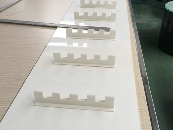 裙边挡板输送带特殊定制说明: 加挡块——挡块样式、大小、数量、颜色根据客户来图来样定制加工;