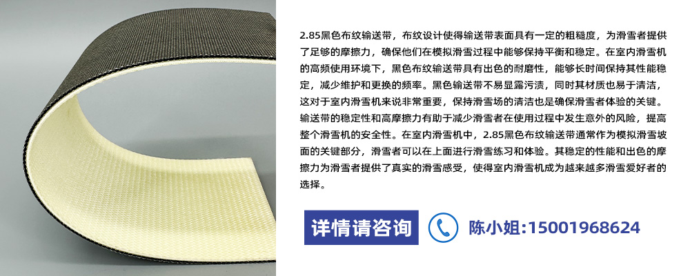 您现在的位置:产品展示>2.85黑色布纹输送带(室内滑雪机行业)