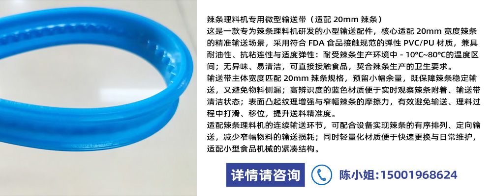 您现在的位置:产品展示>辣条理料机专用输送带(适配 20mm 宽度)